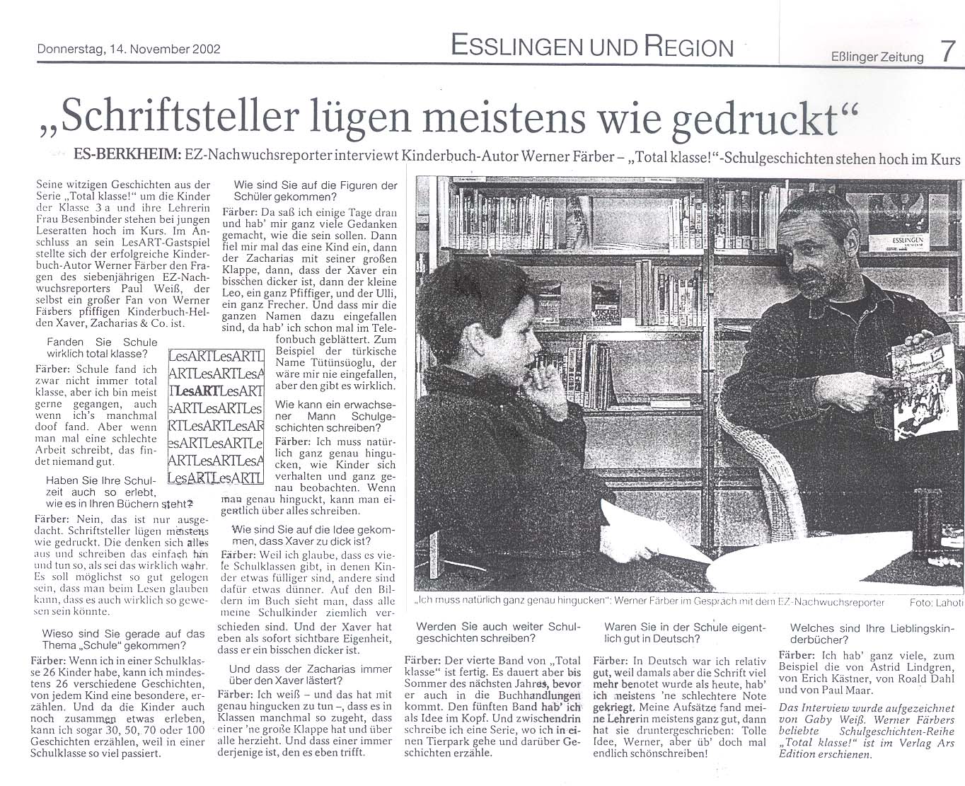 Nachwuchsreporter Paul Weiß interviewt Werner Färber (14. November 2002)